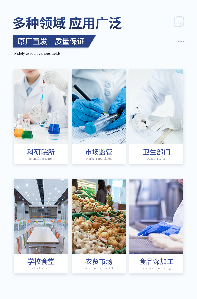 可現(xiàn)場快速檢測底料中非食用化學(xué)物質(zhì)、濫用食品添加劑、農(nóng)藥殘留、獸藥殘留、重金屬、抗生素類殘留、激素類殘留、毒素類殘留、化學(xué)類殘留等多項(xiàng)目的快速定性定量檢測。如底料中的山梨酸鉀、苯甲酸、甜蜜素、安賽蜜、黃曲霉B1等快速檢測。 該多功火鍋底料檢測儀為集成化食品安全快速檢測分析設(shè)備,廣泛應(yīng)用于食藥監(jiān)局、衛(wèi)生部門、底料加工、工商執(zhí)法等單位使用。