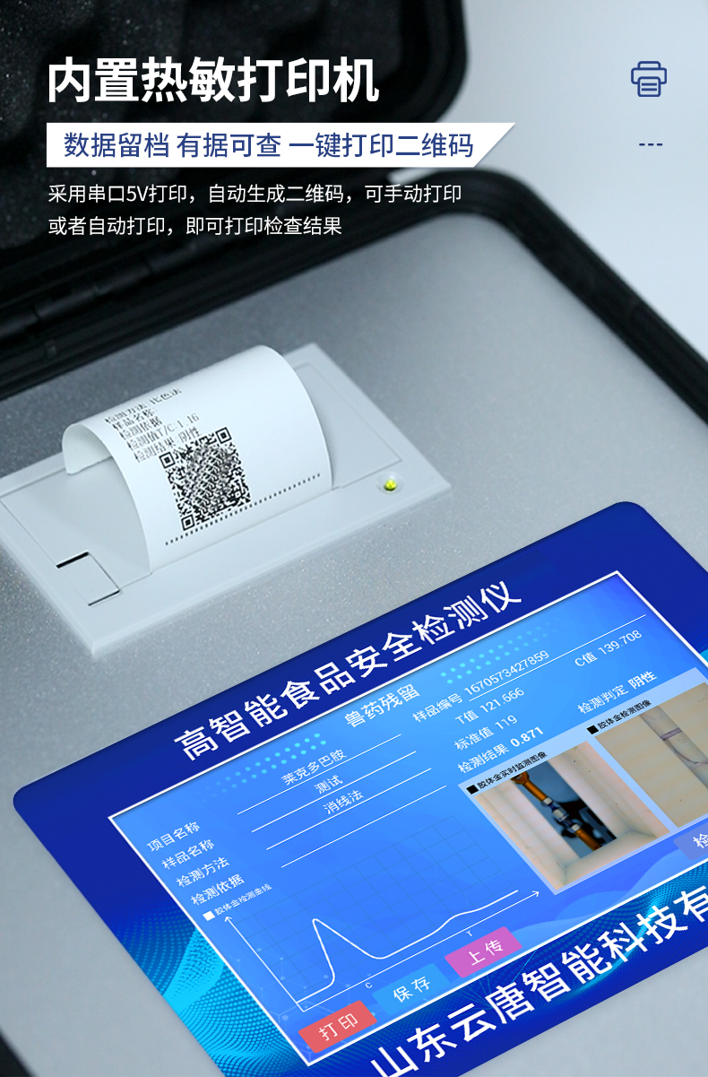 3、新一代高速熱敏打印機(jī),檢測完成可自動(dòng)打印檢測報(bào)告和二維碼。