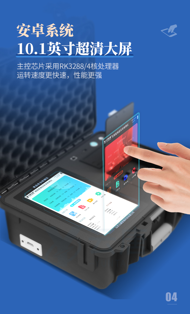 1、儀器采用10.1英寸液晶觸摸屏顯,搭配運行安卓智能操作系統,主控芯片采用ARM Cortex-A7,RK3288/4核處理器,主頻1.88Ghz,運轉速度更快速,性能更強。