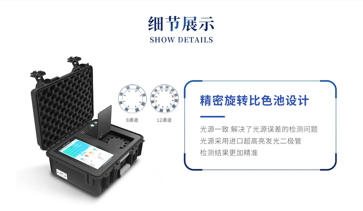 *②儀器具有自動識別比色皿檢測功能,將樣品比色皿放入儀器后,儀器自動識別比色皿進行通道檢測。