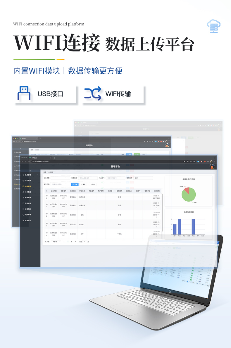 8.3、數(shù)據(jù)監(jiān)管系統(tǒng):同步對(duì)接監(jiān)管平臺(tái),數(shù)據(jù)可局域網(wǎng)和互聯(lián)網(wǎng)數(shù)據(jù)上傳,檢測(cè)結(jié)果可選擇直接傳至食品安全監(jiān)管平臺(tái)。進(jìn)行區(qū)域食品安全監(jiān)管及大數(shù)據(jù)分析處理與數(shù)據(jù)統(tǒng)計(jì),檢測(cè)區(qū)域食品安全長(zhǎng)短期動(dòng)態(tài),達(dá)到食品安全問(wèn)題預(yù)估、預(yù)警。