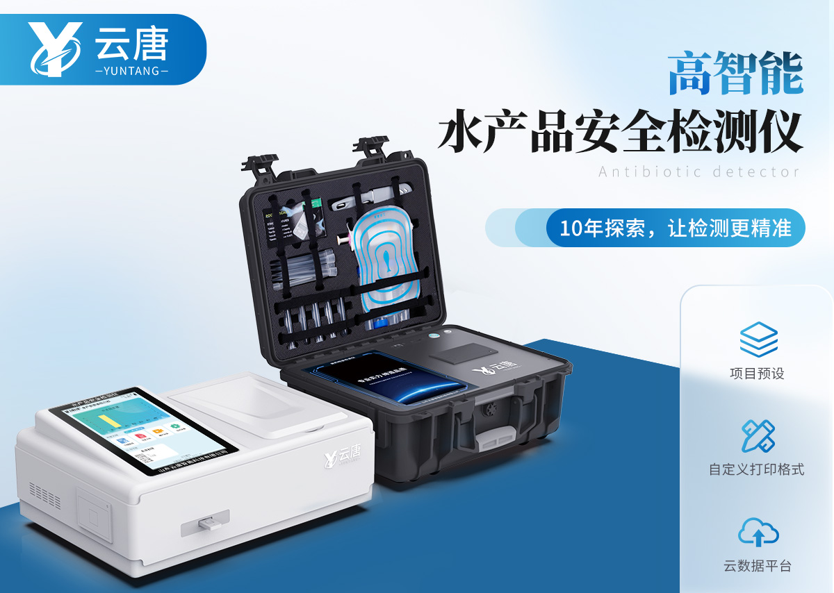 山東云唐智能科技有限公司生產的水產品安全檢測儀可適用于魚、蝦等水產中孔雀石綠、氯霉素、硝基呋喃類:呋喃唑酮(AOZ)、呋喃它酮··· 熱線:133-7109-8225