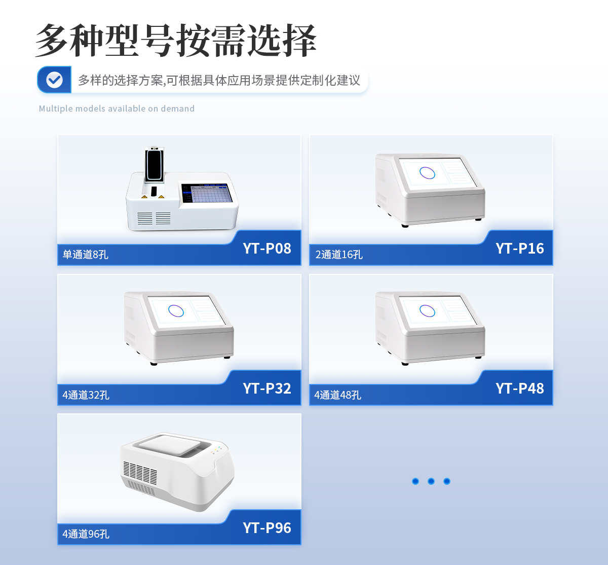 YT-P08型號(hào) 實(shí)時(shí)熒光定量PCR儀器的原理:聚合酶鏈?zhǔn)椒磻?yīng)(polymerase chain reaction,PCR)是一種用于放大擴(kuò)增特定的DNA片段的分子生物學(xué)技術(shù),它可看作是生物體外的特殊DNA擴(kuò)增,由高溫變性、低溫退火及適溫延伸等幾步反應(yīng)組成一個(gè)溫度循環(huán)周期,使目的基因得以迅速擴(kuò)增,具有特異性強(qiáng)、靈敏度高、操作簡(jiǎn)便、省時(shí)等特點(diǎn),是基因擴(kuò)增技術(shù)的一次重大革新。PCR技術(shù)可將極微量的目標(biāo)DNA特異地?cái)U(kuò)增上百萬(wàn)倍,從而大大提高對(duì)DNA分子的分析和檢測(cè)能力。